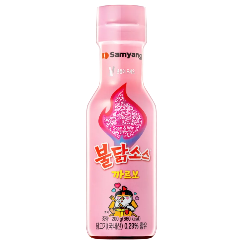 크리미한 매운맛 : 맛있게 매운 불닭소스가 부드러운 크림이 더해진 까르보불닭소스로 탄생했어요!